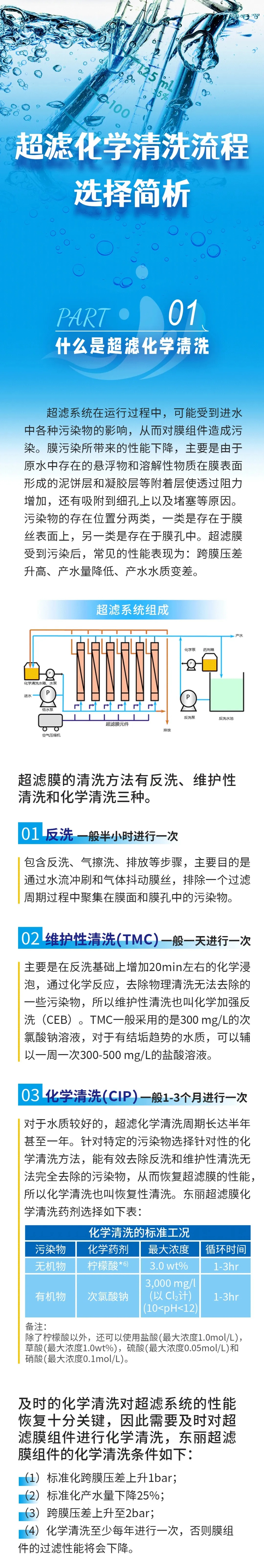 超滤化学清洗流程选择简析