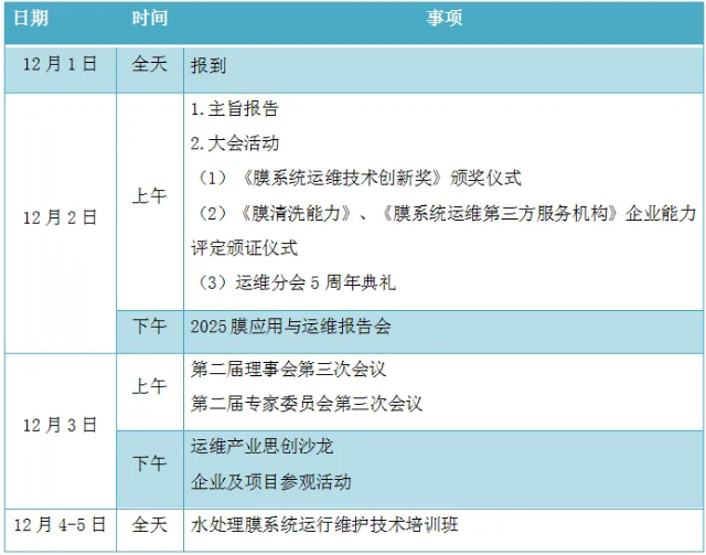 中国膜工业协会膜系统运行与维护分会定于2025年12月2日至5日举办“2025膜应用与运维报告会暨运维分会年会”。