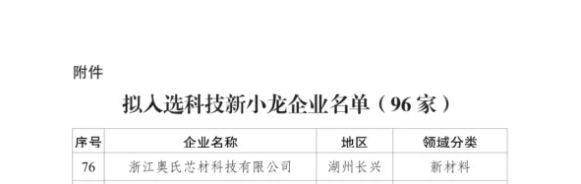 近日,浙江省高新技术企业协会正式公示2025年度“浙江省科技新小龙企业”名单,全省共96家科技型企业脱颖而出。其中,浙江奥氏芯材科技有限公司凭借其在高端分离膜材料领域的创新实力与产业化成果,成功入选新材料领域代表企业,标志着公司在核心技术突破与产业引领方面获得了省级层面的高度认可。