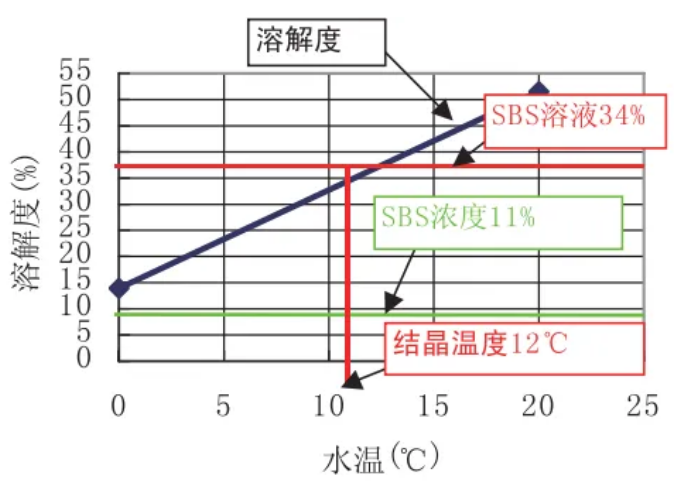 如图所示,当亚硫酸氢钠浓度为34%时,如果温度低于12℃会结晶;而亚硫酸氢钠浓度为11%时,即使在0℃也不会结晶。