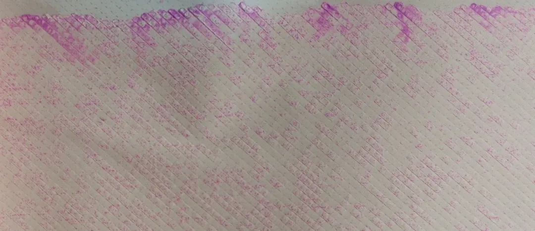水锤对膜元件造成的影响:我公司售后服务工程师将受损膜元件返厂,进行解剖染色分析,发现网格的小格内出现气泡状剥离,膜脱盐层受到强烈拉伸,导致膜元件的脱盐率降低。
