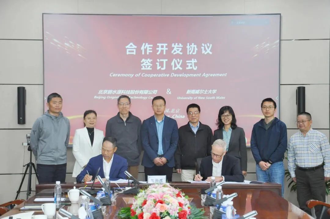 4月13日,新南威尔士大学教授、美国工程院院士David Waite一行赴碧水源交流,双方签订了“数字化膜污染控制”项目合作开发协议,碧水源董事长文剑平,高级副总裁陈春生,副总裁刘安波,研发中心副主任李锁定,碧水源高级顾问关晶博士等出席此次合作签约仪式。