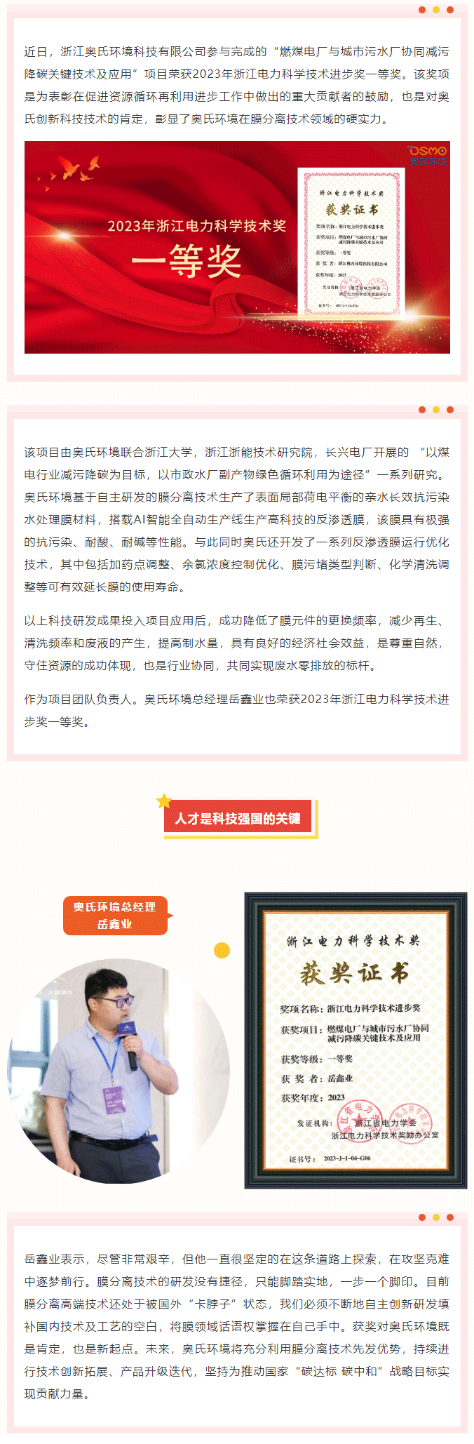 奥氏环境荣获浙江省电力科学进步奖一等奖