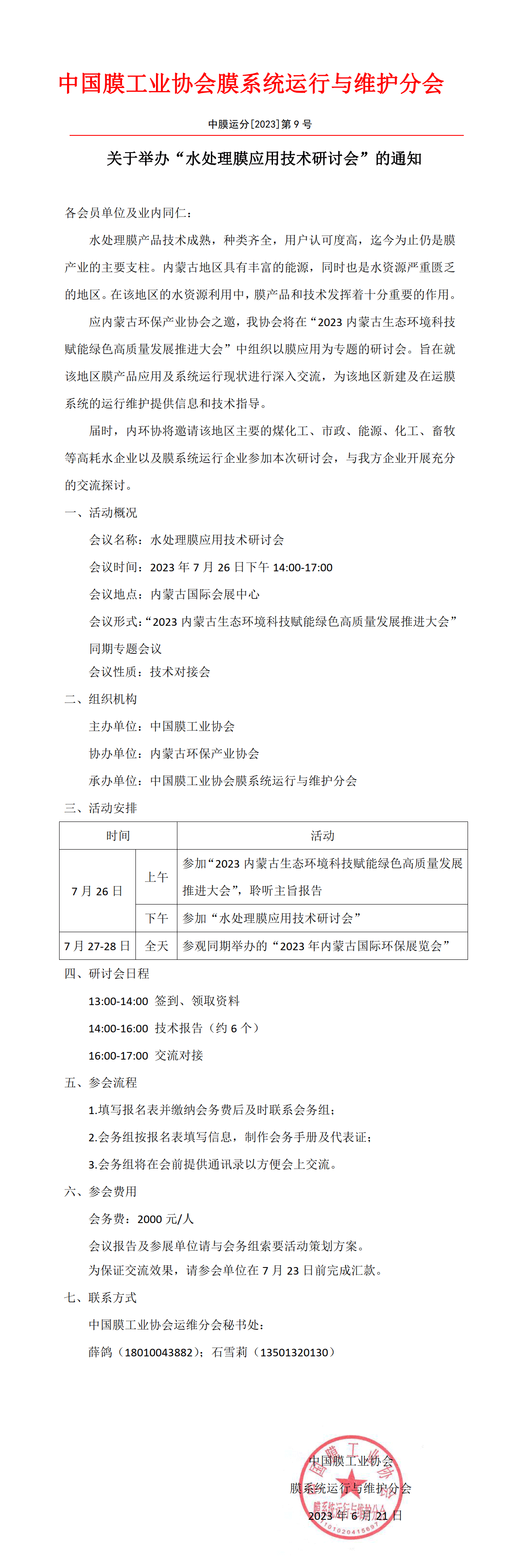 水处理膜应用技术研讨会附件