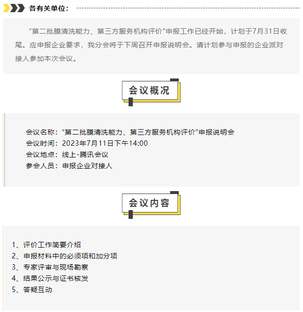 7月11日丨“第二批膜清洗能力、第三方服务机构评价”申报说明会