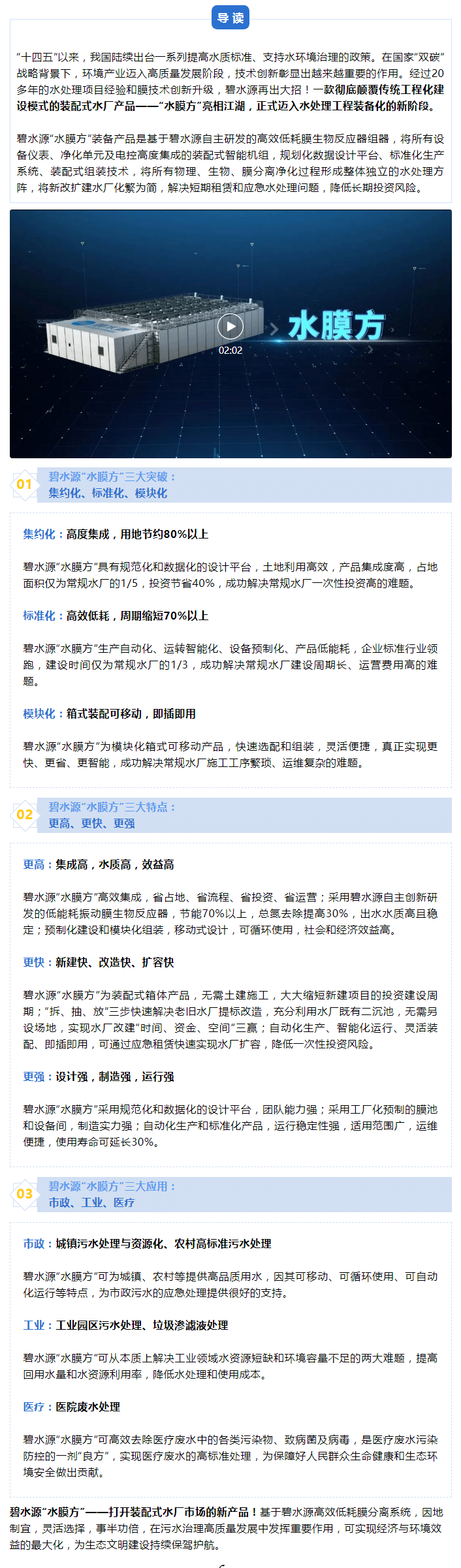 「水质净化革命」进行时:碧水源推出装配式水厂——“水膜方”