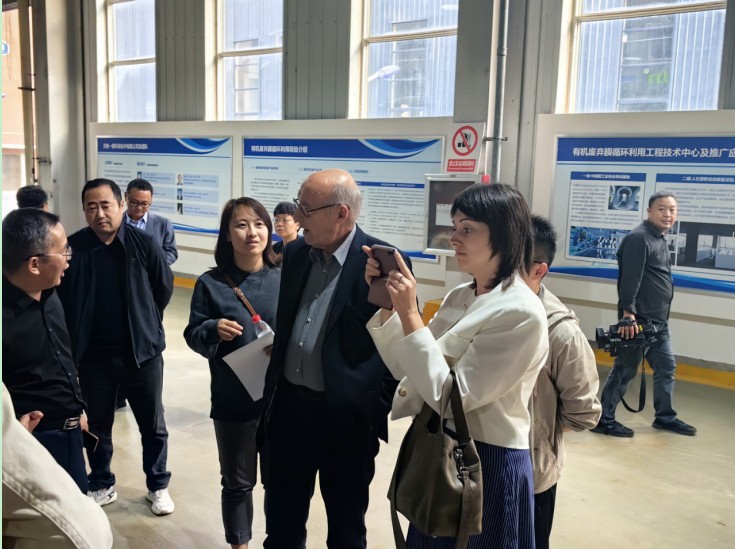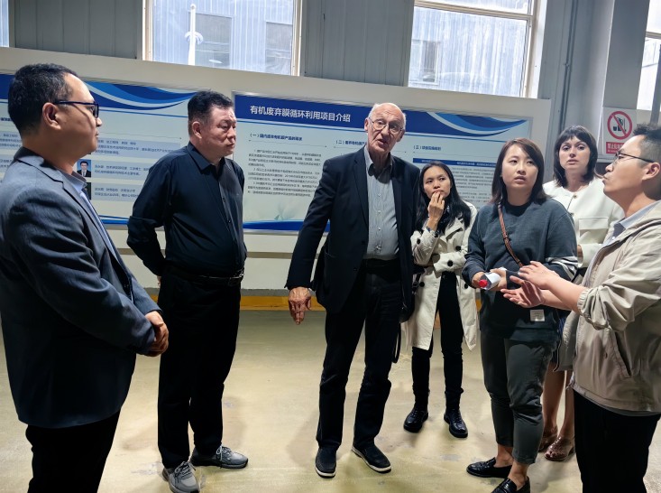专家团先后参观了河南一膜环保技术有限公司的工程技术中心、疑难膜问题综合实验室及生产车间,深入了解了一膜环保废弃膜资源化再利用技术,及科研成果转化在工业项目上的运营情况。彼得科维奇院士对一膜环保的新膜材料中试基地、新膜产品特点,以及生产设备、生产工艺流程等问题表达了浓厚的兴趣。