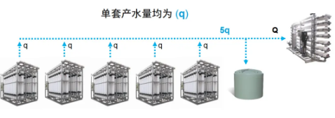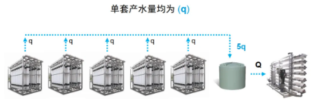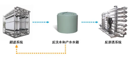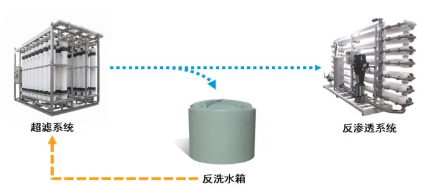 恒产水量运行,反洗时运行通量提高,超滤系统和下游单元直连(中间没有缓冲水箱)